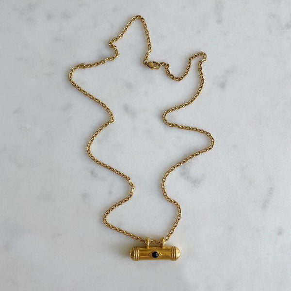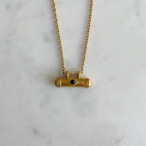 Gouden ketting van stainless steel met een buis pendant boeisluiting. Stoer en stylish. Mooi om te layeren met andere kettingen.