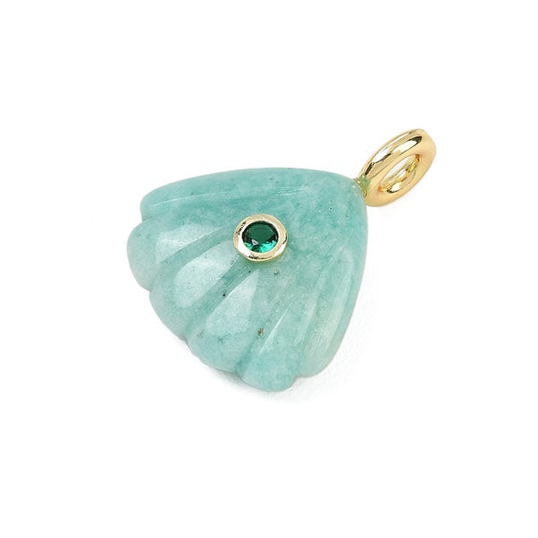Deze bedel van amazoniet heeft de vorm van een waaier en hang je makkelijk aan een koord ketting of chunky schakelketting.