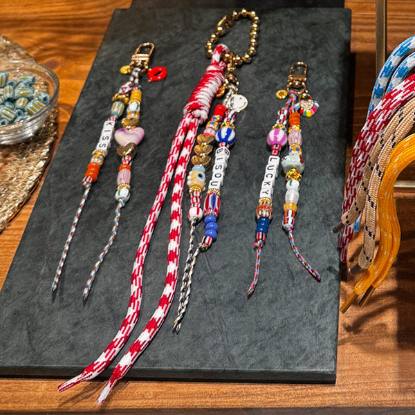 Möchten Sie Ihren eigenen originellen Taschenanhänger, den sonst niemand hat, haben aber weder die Zeit noch die Lust, ihn selbst zusammenzustellen? Natürlich ist das möglich. Wählen Sie Ihre Lieblingsanhänger und lassen Sie uns den Taschenanhänger herstellen. Dies ist in Beadies Amsterdam und Utrecht und natürlich online möglich.
