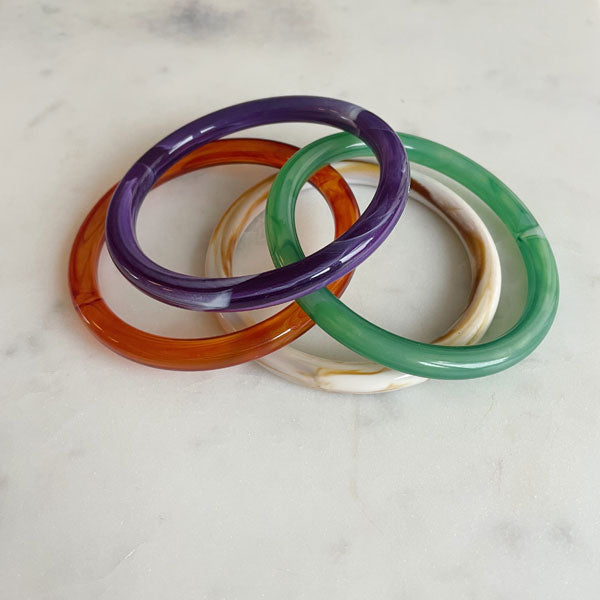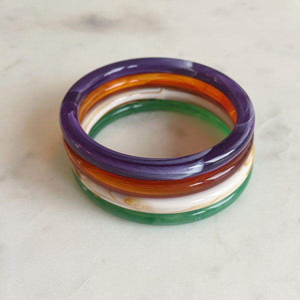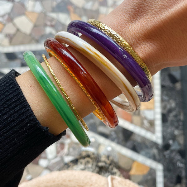 Een ideale basic deze gekleurde bangle armband in groen, bruin, wit en paars. Past bij iedere outfit en als aanvulling op jouw collectie armbanden.