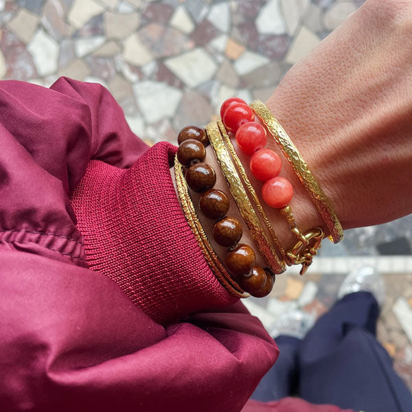 Grote ronde orange salmon kraal. The bigger the better! Grote kralen zijn de trend van het moment. Mix ze met elkaar of in 1 kleur. Je rijgt er makkelijk en snel een ketting of armband van. Voor een ketting van 43 cm heb je circa 41 kralen nodig en voor een armband circa 15 kralen. Dit gouden boeislot is een mooie optie als sluiting. Have fun!