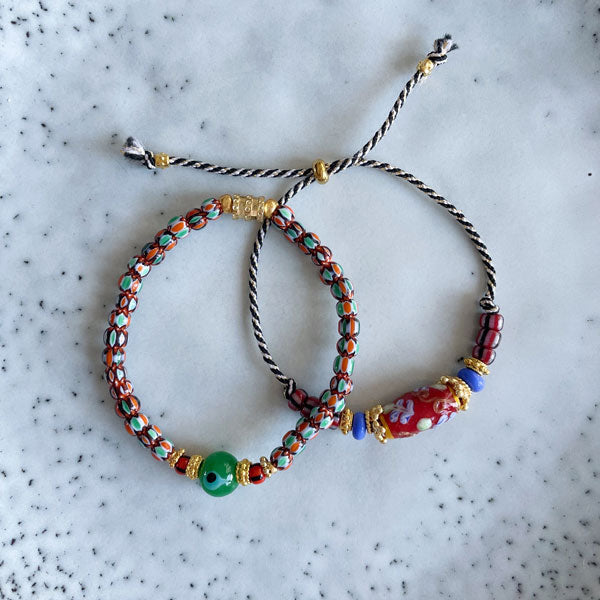 - Material: Woven cord, glass and 18k gold plated nickel-free metal.