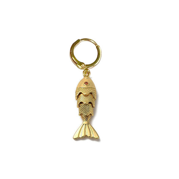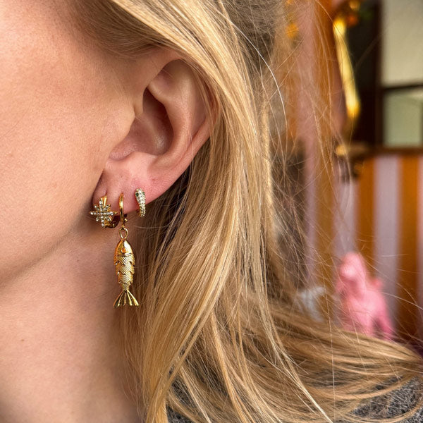 Deze gouden bewegende vis mag niet ontbreken in jouw earparty. Een ideale oorbel als je meerdere gaatjes hebt. Mix en match met onze ruime collectie oorbellen.