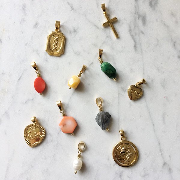 Would you like to make this necklace yourself? These are the materials you need: Miyuki seed beads , gold plated extension clasp , crimp beads and metal wire . For the pendants you need: a beautiful semi-precious stone , endpins , a gold- plated bead and the handy eye that you can squeeze closed with flat-nose pliers . Use round nose pliers to make a nice circle at the end of the end pin .