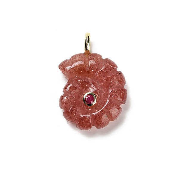 Deze quartz bedel in de vorm van een schelp hang je makkelijk aan een koord ketting of schakelketting.
