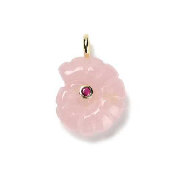 Deze rozenkwarts bedel in de vorm van een schelp hang je makkelijk aan een koord ketting of schakelketting.