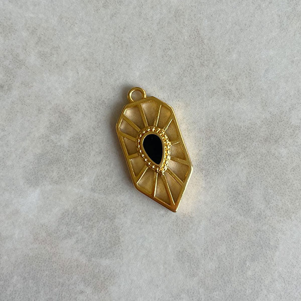 Gouden geometrisch bedel met zwart. Een opvallende bedel die je bv aan een ketting van gekleurd koord kunt hangen. Deze kun je afhechten met een smart bead stopper voor koord. Zo is je ketting verstelbaar en heb je altijd de juiste lengte.