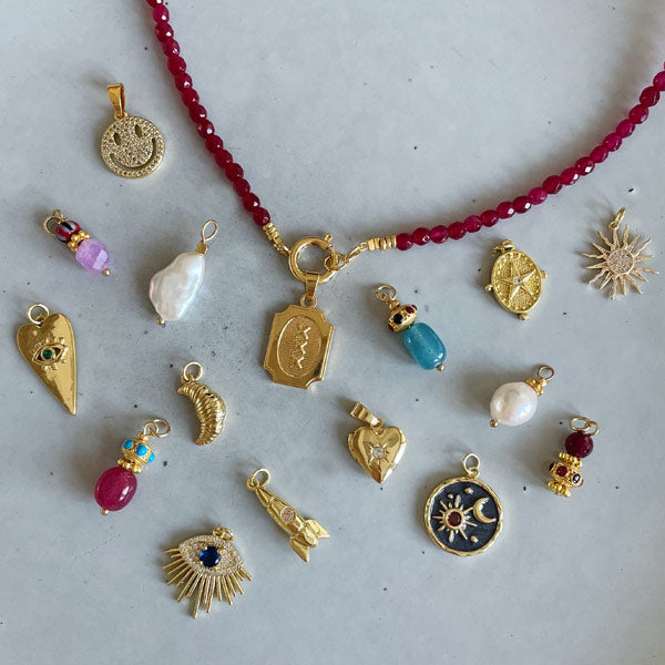Deze ketting is geregen van facet geslepen donkerroze agaat kralen en is te bestellen met of zonder bedel. Kies je een ketting met bedel? Dan kun je deze er makkelijk af en aan doen.