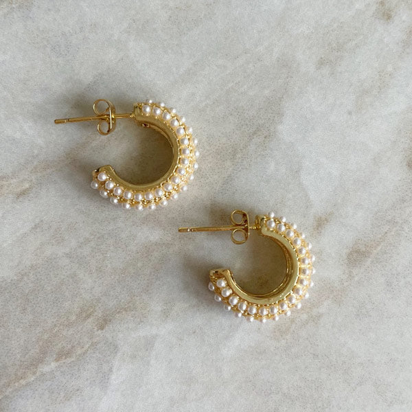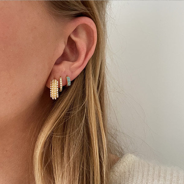 Ideale creolen met kleine pareltjes die je per paar of per stuk kunt dragen. Stoer en stijlvol. Met een jeans of partydress. Mixen met jouw favoriete oorbellen kan natuurlijk ook als je meerdere gaatjes hebt.